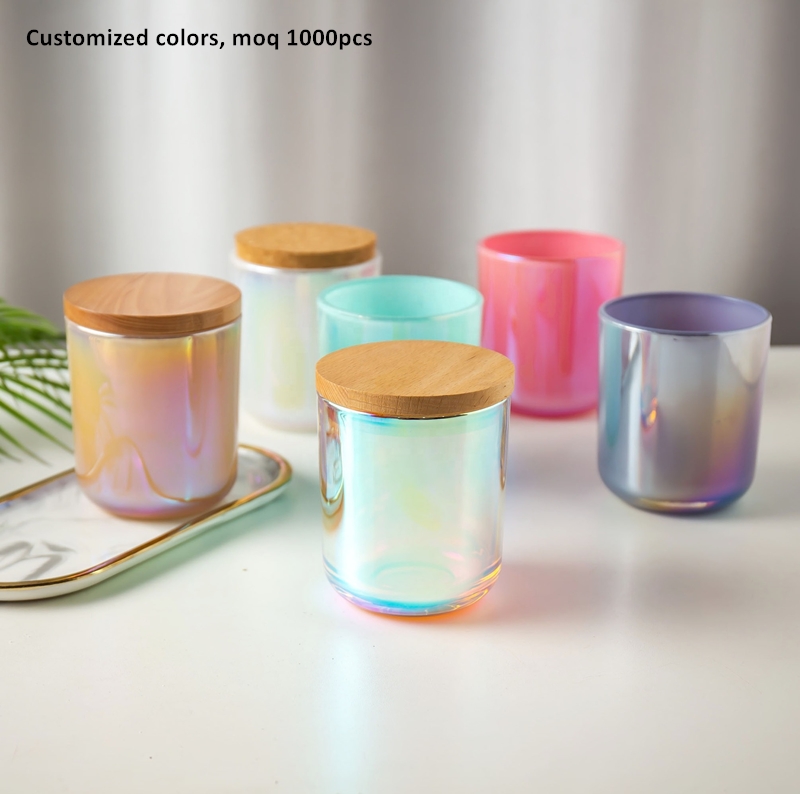 Vela vacía de vidrio esmerilado, transparente, mate, negro y blanco, tapa de bambú, 10oz