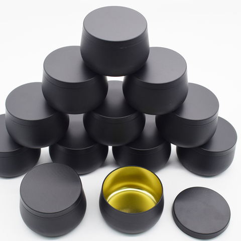 Vacío barato pequeño mini 4 Oz 8 Oz Lujo Redondo Negro Metal Matcha Lata Vela Contenedores Vela Lata Tarros Negros
